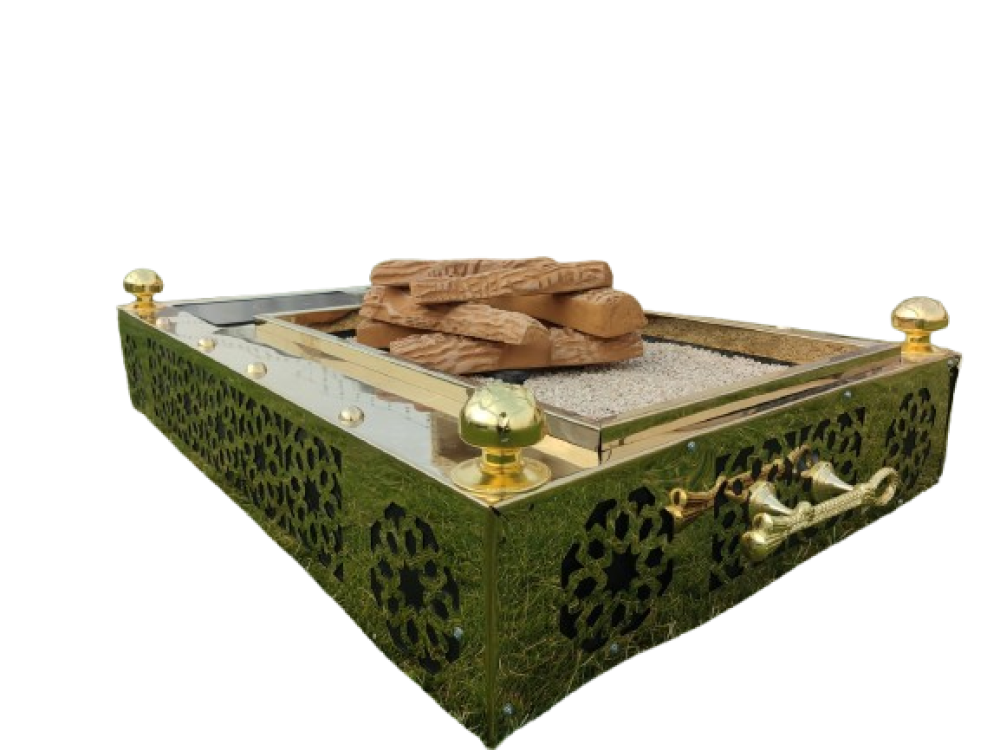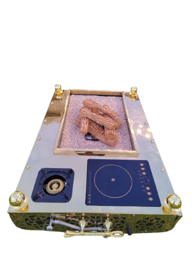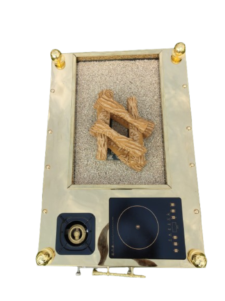 طاولة تدفئة عملية متعددة الاستخدامات تجمع بين الكهرباء والغاز وشبة النار )شبة حاتم )لتوفير أقصى درجات الراحة.